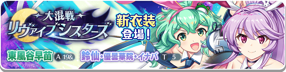 また、 「鈴仙・優曇華院・イナバ(A8)」 「東風谷早苗(A10)」の「衣装解放&物語解放」、 「聖白蓮(A12)」 「豊聡耳神子(A13)」 「アリス・マーガトロイド(A7)」の「生魂解放」が実装されます。