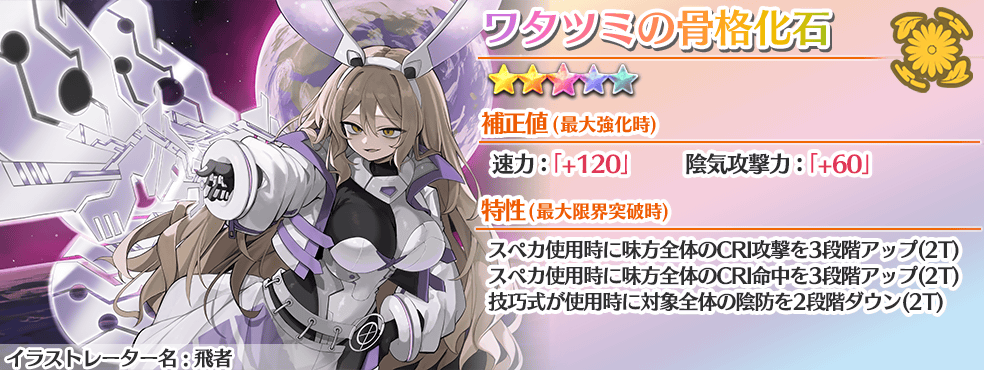 育成パックには、「フレームアーカイブ ワタツミ 綿月豊姫(C3≫)」の昇格に特に多く必要な「巻物[参]」がセットになっており、同キャラクターの育成に特化しています。