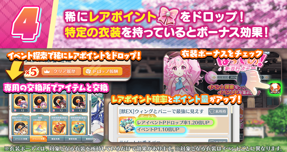 ※本イベントで獲得できるレアイベントPは、本イベント専用のものとなります。別のイベントのレアイベントPとして、交換所での使用はできませんのでご注意ください。