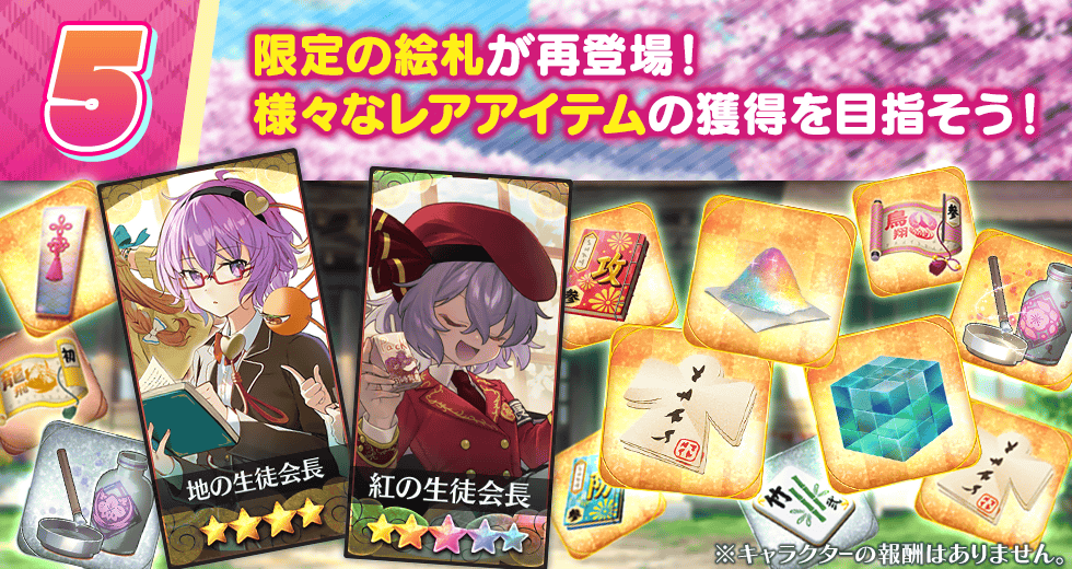 ※仲間確定祝詞で登場するキャラクター、絵札祝詞で登場する絵札はゲーム内のお知らせをご覧ください。
