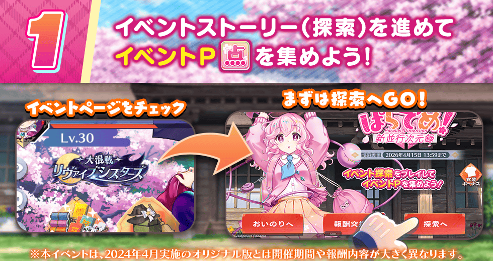 一部探索は、1日1回、獲得できるイベントPが5倍になります。