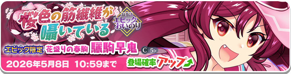 「花盛りの春駒 驪駒早鬼(C5>)」の登場確率がアップしたおいのりが登場します!