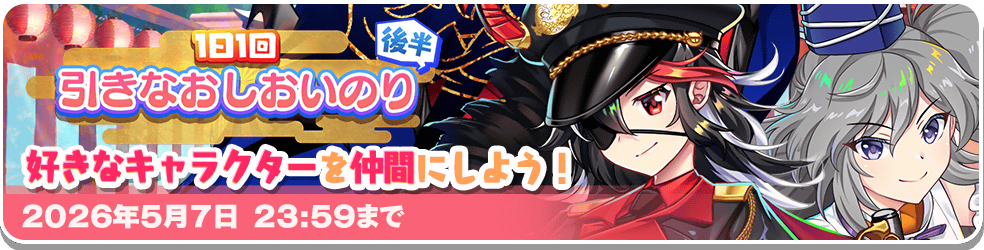 期間中、毎日1回無料で引きなおしができるおいのりの後半が登場します!