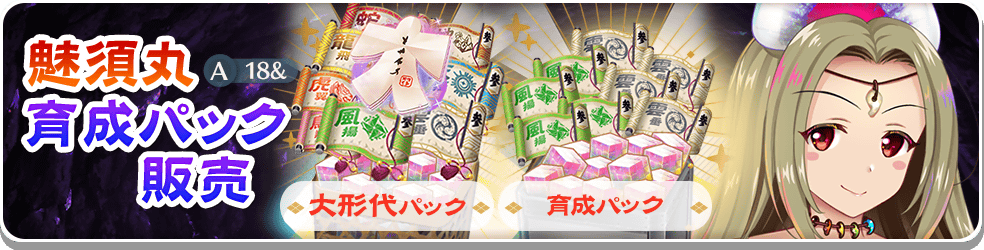 期間限定で「[虹EX]本物すぎる勾玉制作職人 玉造魅須丸(A18&)」の育成アイテムがお得に手に入る「魅須丸(A18&)育成パック」が2種類登場します!