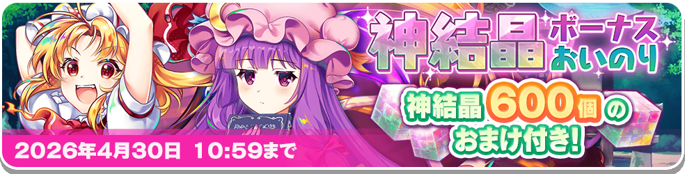 神結晶600個のおまけがついた、「神結晶ボーナスおいのり」が登場します!