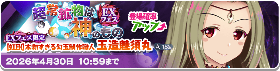 「[虹EX]本物すぎる勾玉制作職人 玉造魅須丸(A18&)」の登場確率がアップしたおいのりが登場します!