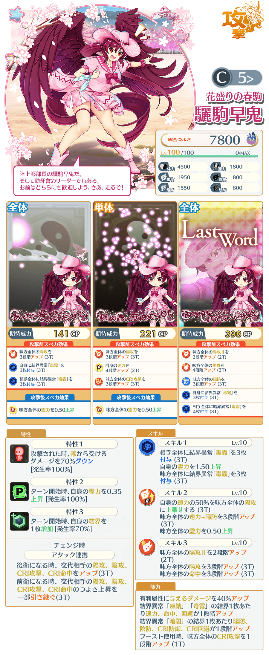 ※画像に記載されている特性は最大限界突破時の情報となります。