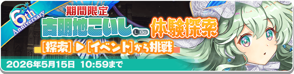 期間限定で、デイリー探索に「鍵を失くした開かずの心 古明地こいし(L0o)」の「仲間限定経験値強化探索」が登場します!