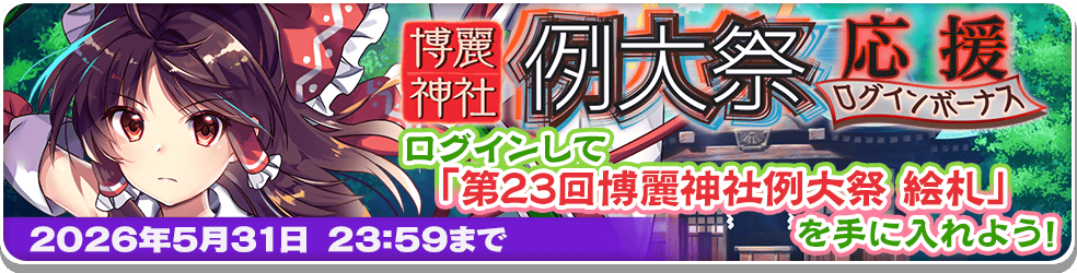 ・絵札「第23回 博麗神社例大祭」を10回強化しよう:封結晶 3個